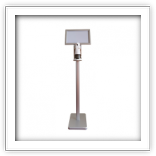 While some dispensers are available without a sign holder having the sign holder enables management to educate and instruct customers to use the sanitizer to protect themselves and other shoppers.